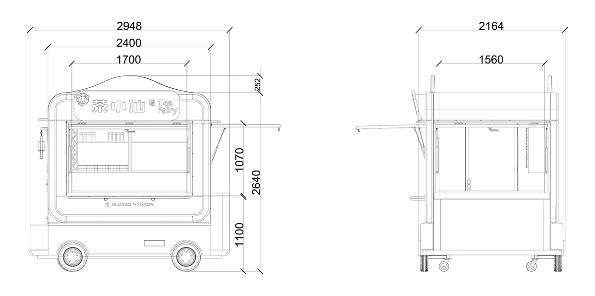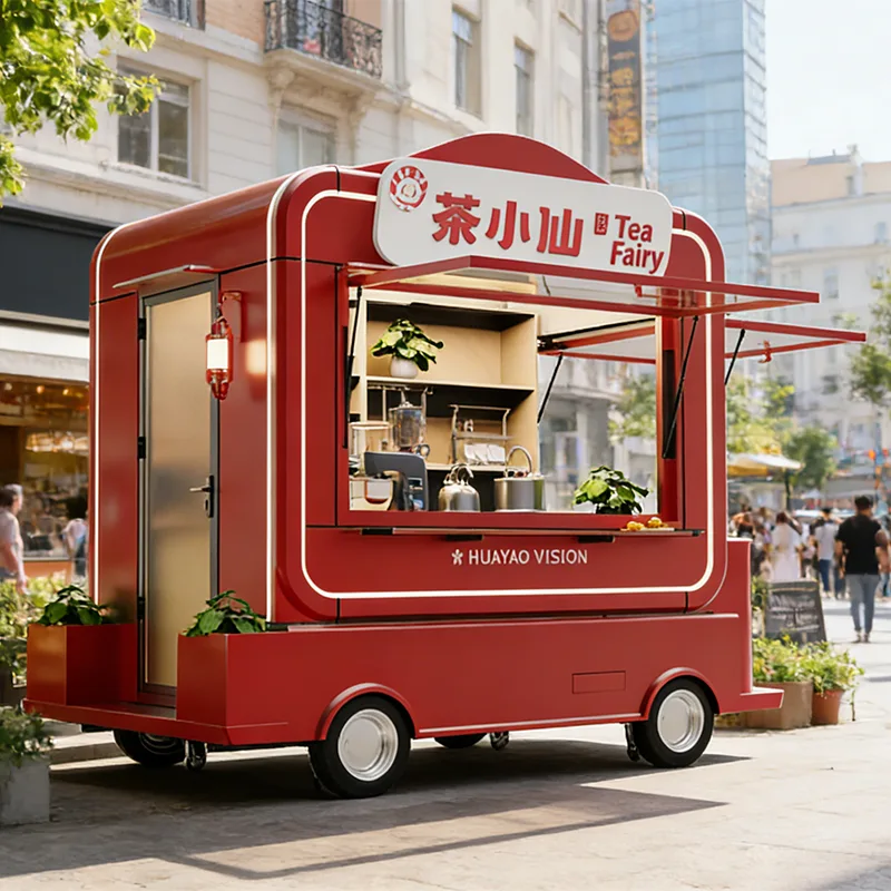 اندازههای محصول عمدتاً 4 متر طول دارند (مناسب برای سناریوهای کسب و کار نوشیدنی)، با یک پنجره فروش همراه با میز عملیات تاشو، سایبان آفتابگیر و باران، و بافلهای ضد گرد و غبار با در نظر گرفتن راحتی سفارش، مخلوط کردن و چیدن وعدههای غذایی. در مقایسه با فروشگاههای نوشیدنی ثابت، تا حد زیادی در هزینههای اجاره، دکوراسیون و املاک صرفهجویی میکند و میتواند بهطور انعطافپذیری نقاط را با توجه به تغییرات جریان مسافران کار کند و با سناریوهای مختلفی مانند رفتوآمد در ساعات شلوغی صبح، چای بعد از ظهر، بازارهای شبانه و نمایشگاهها سازگار شود. این به تسخیر سریع بازار مصرف کننده کمک می کند و تجهیزات ترجیحی برای کارآفرینی در مقیاس کوچک، پاپ آپ های مارک و خدمات نوشیدنی سناریو است.